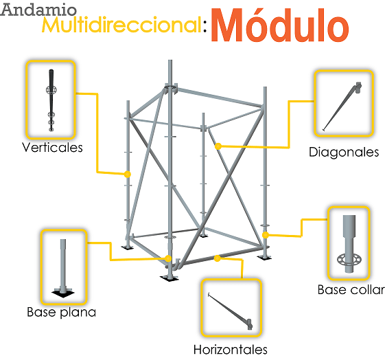 Es el sistema de andamiaje más flexible e innovador. Por la ingeniosa forma de unión y ensamble de sus piezas basado en una roseta de unión y cierre con cuña es posible dar cualquier forma y ángulo al sistema de manera completamente segura.Puede armarse acorde a la necesidad de la obra brindando mayor precisión.